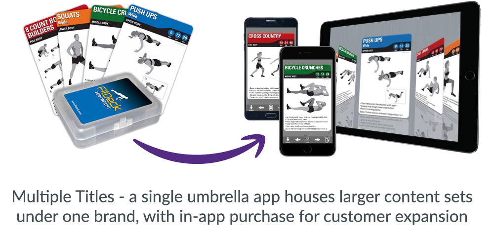 In-app purchases, sampler decks, and subscription options provide an escalating pathway for your customers to embrace your brand and grow their content library. Over 60% of mobiDECKS users purchase more, yielding 5-20x additional revenue.